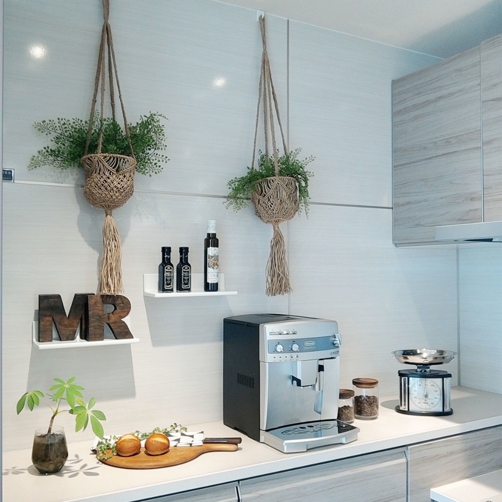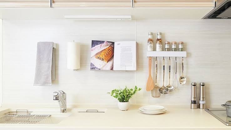 調味料やキッチンペーパーなどのキッチンでよく使うものは、壁に「どこでもラック」を付けてサッと取り出しやすくできます✨